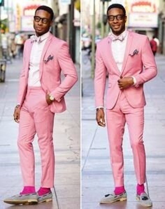 Pink Suits For Men 2 Piece Slim Fit Suit Tailored One Button Etsy In 2022 Pink Suit Men Wedding Suits Men Slim Fit Suit Men
